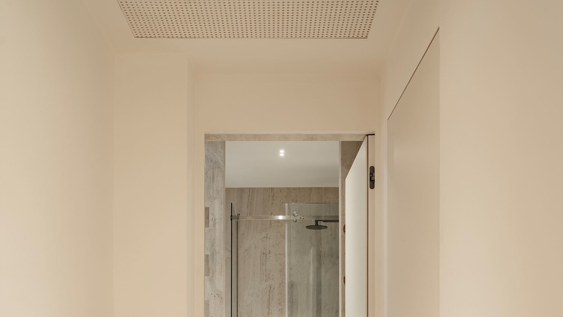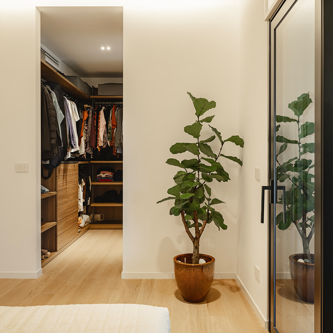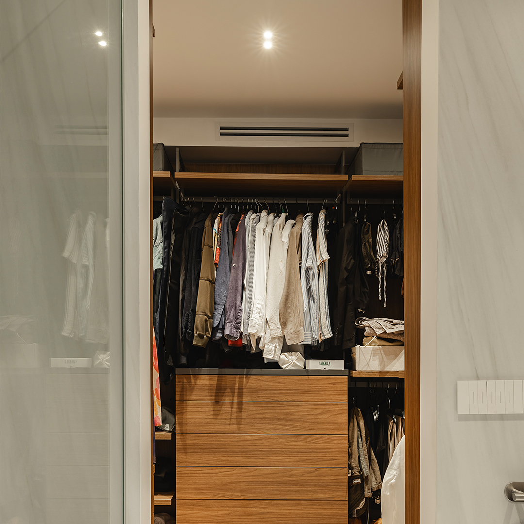 Gli arredi su misura sono stati progettati dallo studio di architettura, è sono stati concepiti come “pareti arredo” cosi da ottenere una linearità materica e stilistica, e più contenimento, alcuni degli stessi si integrano a vani tecnici dedicati agli impianti tecnologici e di raffrescamento.